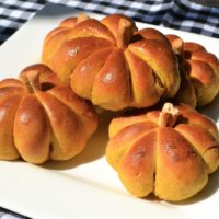 Serve these cute little Pumpkin Stuffed Dinner Rolls for your next dinner party.  Your guests will want to know how you made the rolls look like pumpkins straight from the patch.  The recipe begins with yeast, pumpkin puree, bread flour and pumpkin pie spice mixed together and stuffed with cream cheese.  Delicious and fun to make.